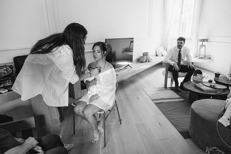 Our hair and makeup artist brings the party to your getting-ready moment. Our team delivers effortless, polished hair and makeup right to your door. No stress, no running around. They are dialed into your style, whether you want a natural glow or something more dramatic. It’s a fun, pampered experience. You’ll feel confident, comfortable, and completely yourself... just a little extra.